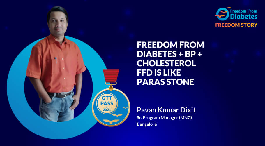 It is a classical story of co-morbidity reversal at FFD. He got diabetes at a very young age of 27 years. Suffered with BP and high cholesterol issues too. Came to FFD and it changed his erratic lifestyle to a disciplined one. He not only became free from diabetes but achieved freedom from BP and cholesterol medicines too.